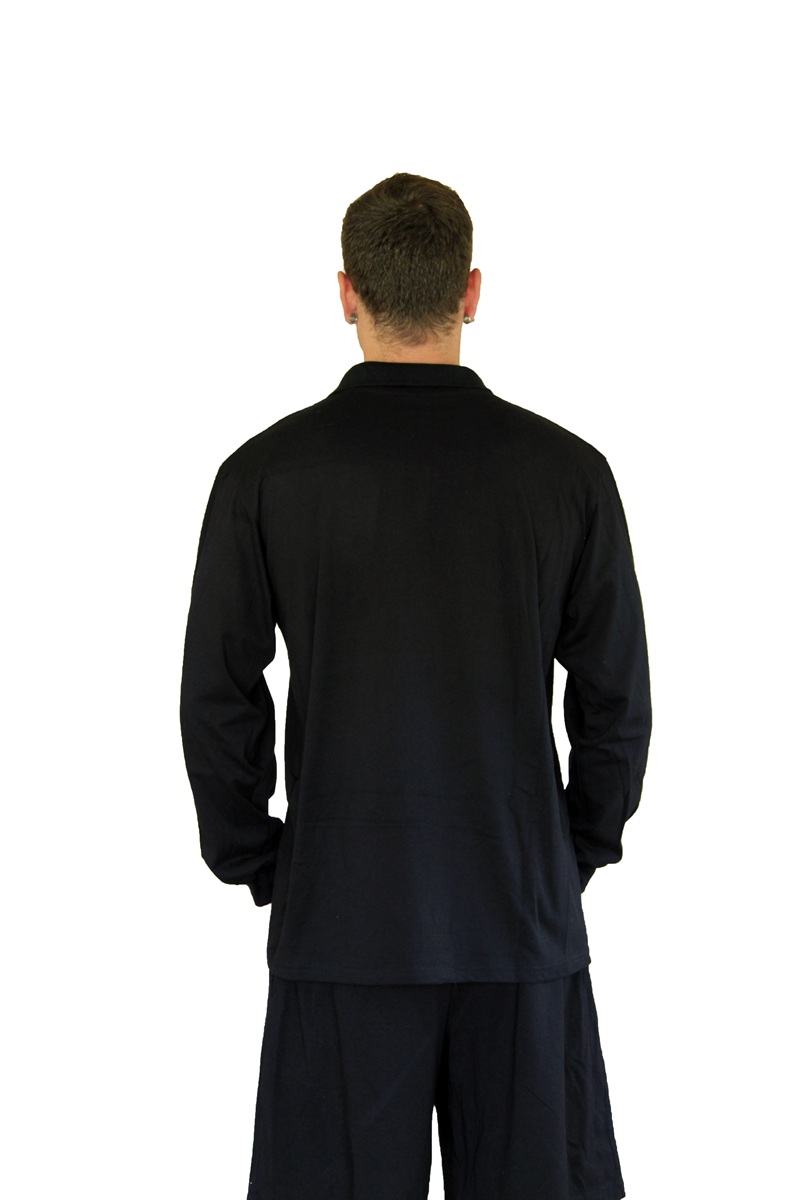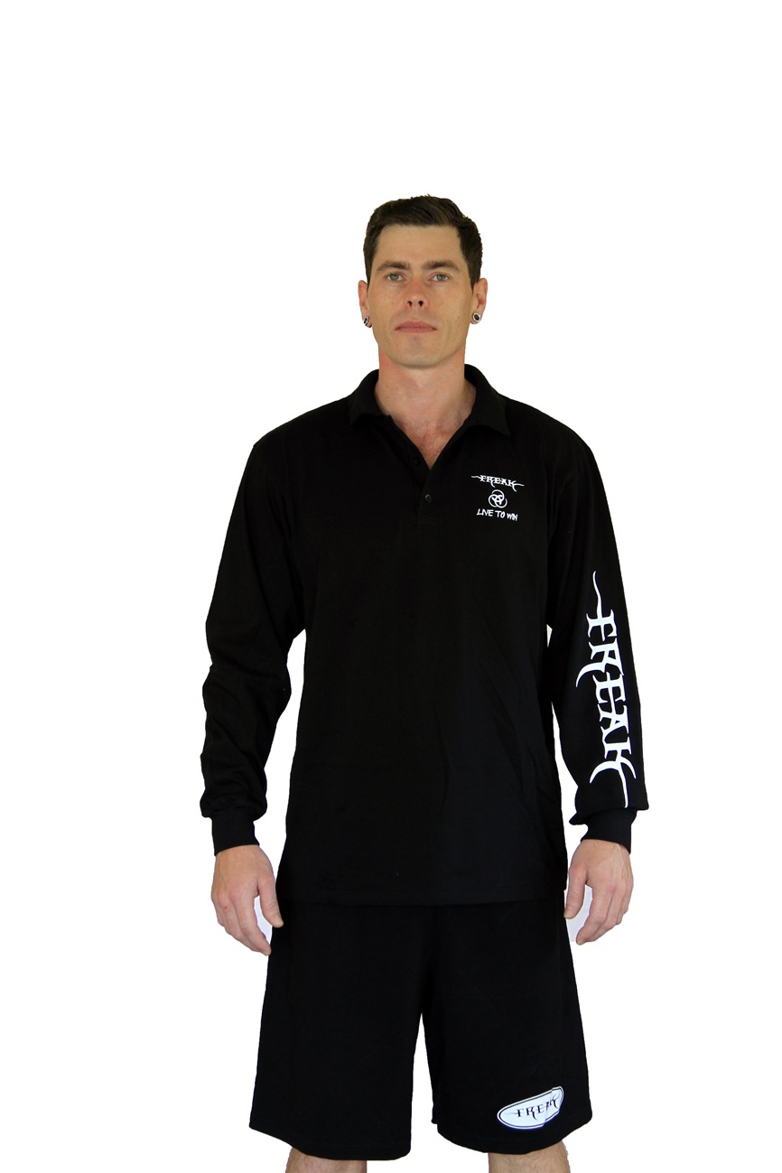 Long Sleeve Black Polo with Pocket & Left Sleeve Black Print
